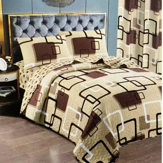 CUBRECAMA FULL 2 1/2 SET 7 PZS GOLDSUN + JGO SABANAS + CORTINAS (ESTAMPADO)